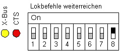 In diesem Modus, den man durch das Setzen des 8ten DIP-Switches (siehe untenstehende Abbildung) auswählen kann, werden Lokfahr-