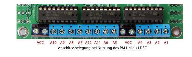 Im folgenden Bild ist die Belegung der Anschlüsse bei Verwendung des PM Uni als LDEC zu sehen.